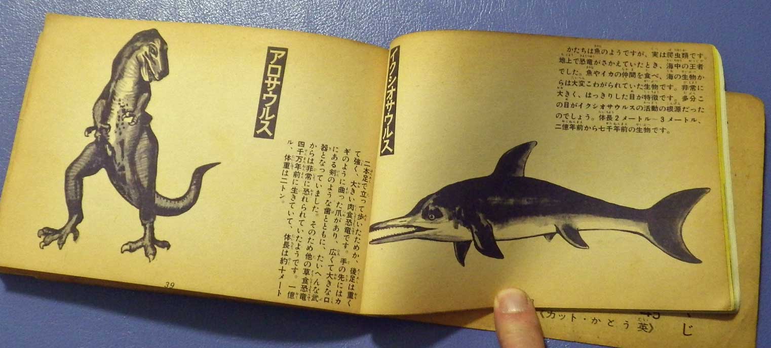 「生きていた怪獣」などと見出しが出ます。でも出だしが「パラサウロロフス」とちゃんと「七千万年前の生物」の書かれた「恐竜」です。「怪獣」ではありません