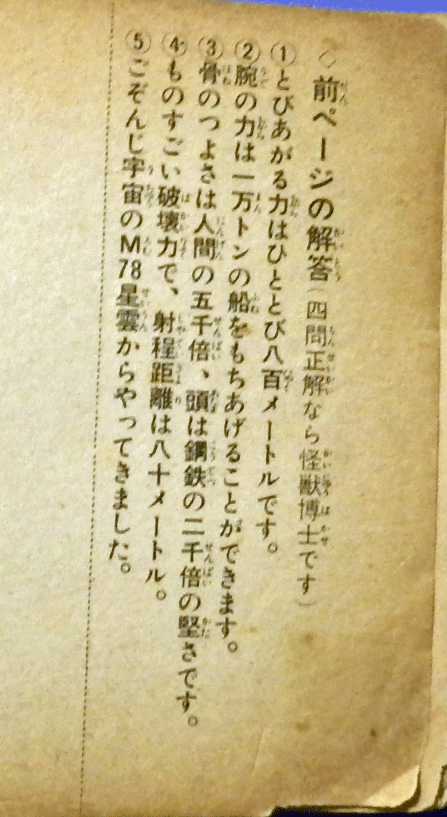 実はこの本というか冊子は当時の雑誌「ウルトラマン」(このウルトラマンのシリーズ)の付属、要するにおまけでした。しかもこれは私が購入したものではありません。当時友達の家に遊びに行ったときに「もらった」モノなです。1968年8月号の発行となっていました。残念ながら本体の「ウルトラマン」8月号は記憶にありません